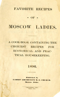 Many of the cookbooks included in the LCHS Collection come from ladies’ groups and organizations associated with area churches. For example, the cookbook put together by the Lutheran Church contains many Swedish recipes, owing to the fact that most Lutheran families in the area had ties to Sweden. The collection contains books from different Moscow churches, civic clubs and service organizations, granges, sororities, local companies like the Washburn-Wilson Seed Company and Idaho Pea and Lentil Commission, music ensembles, Moscow library patrons, and others. These collaborative cookbooks detailed multiple family and community practices inherent to that group. Many feature regional ingredients such as peas, lentils, and huckleberries. So many women’s groups throughout the twentieth century illustrate how upper class women undertook different charity and community based efforts, many of which have cookbooks in our collection: The Women’s Civic Improvement Club of Bovill, church ladies’ aid societies, Women’s Club of Viola, Dry Creek Welfare Club, Moscow Jaycee Ettes, and the Ladies of the W. H. M. Society in Troy.