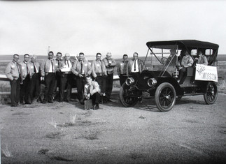 Left to right: Moscow Chamber of Commerce Flying Pea Weevils at the airport ready to greet flyers once they land. LCHS ID: 01-11-163; The 1941 opening of the Pullman-Moscow Regional Airport. Vehicles are lined up all along the passing roads to view the airport. LCHS ID: 30-13-200; Vehicles lined up at the Pullman-Moscow Regional Airport during the 1960s. LCHS ID: 30-13-146
